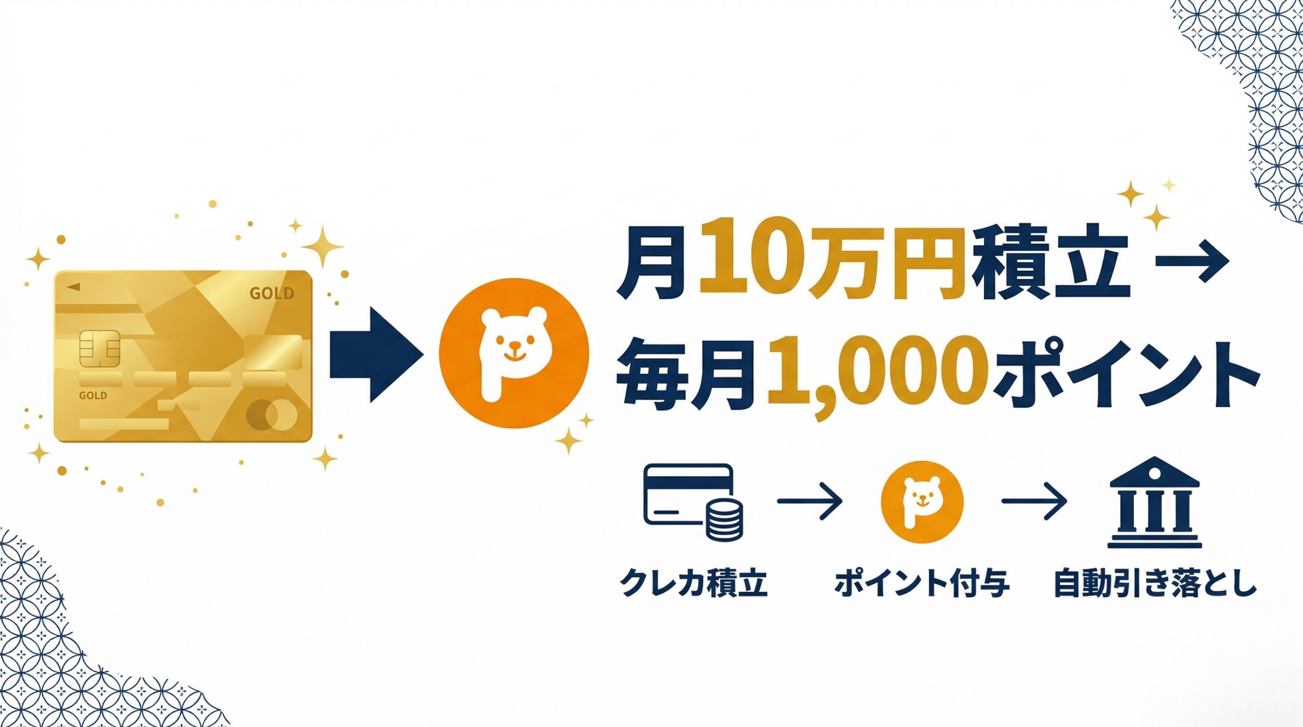 一度設定すれば毎月の管理はほぼゼロ。「積立→ポイント付与→口座引き落とし」がすべて自動で完結します。
